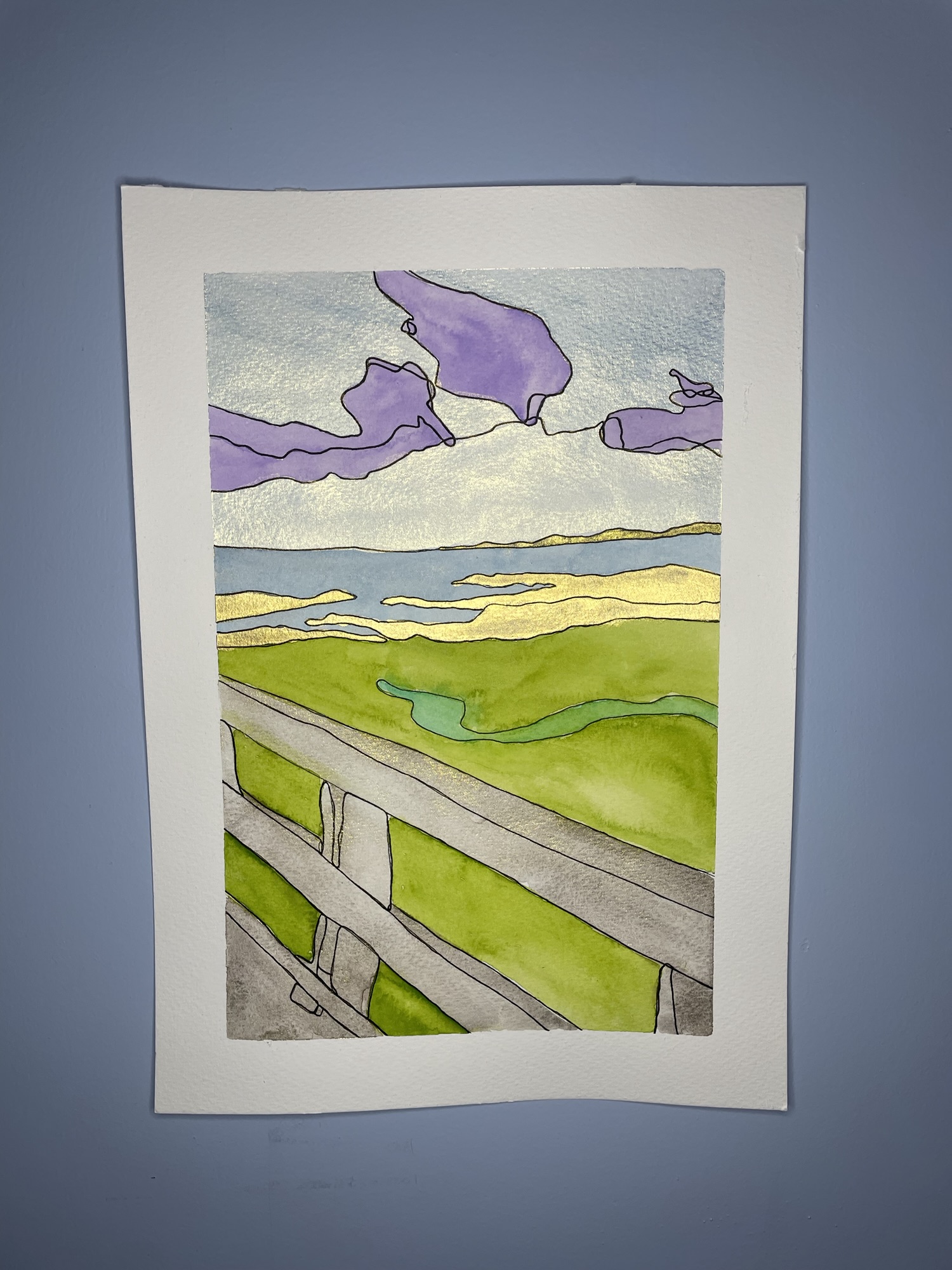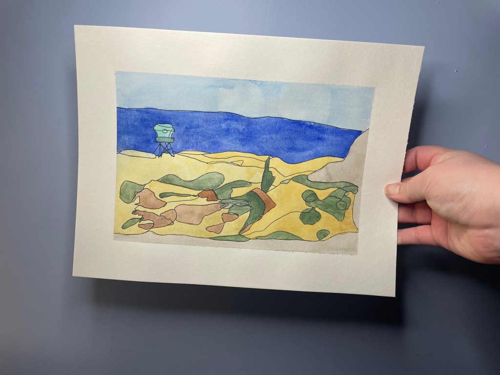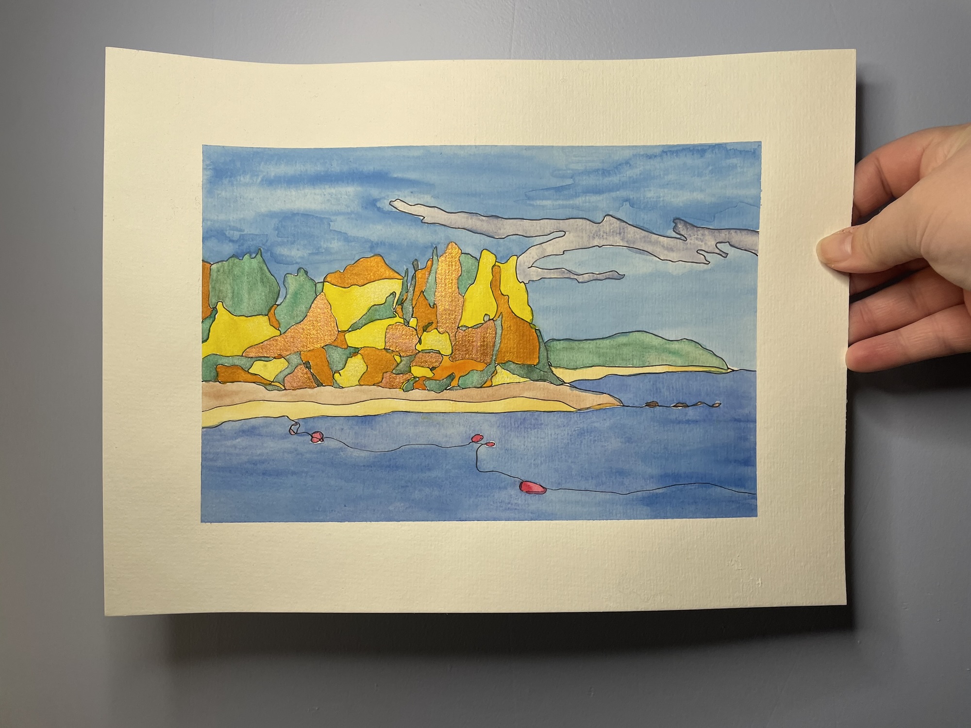 this work is a reflection on exploration, time away, and friendship. Watercolor, pen, and ink, on 140lb cold press paper