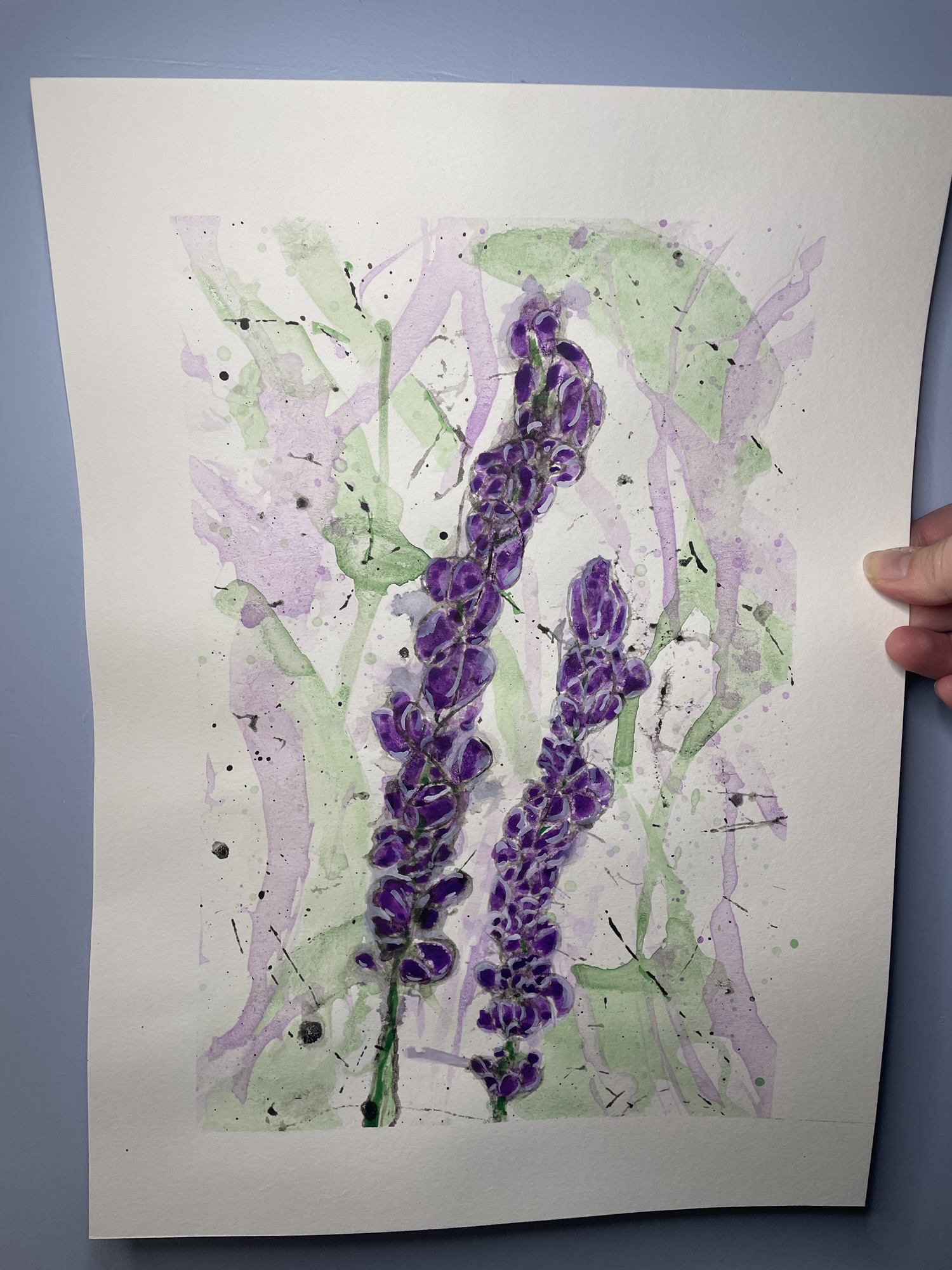 Abstract watercolor painting of lavender flowers, inspired by queer history.